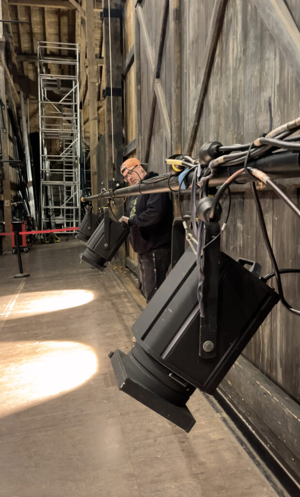 J’appuie sur un bouton et les portes s’ouvrent (rires). Non c’est faux, c’est une légende urbaine. Tout le monde croit que ce sont des portes automatisées électroniques mais ce sont les régisseur·euses qui ouvrent ces grandes portes en bois et selon les saisons, plus difficilement que d’autres. Pour faire une ouverture fluide durant le spectacle, cela demande d’être plusieurs de chaque côté. Et selon les besoins scénographiques on ouvre les portes un peu, beaucoup, en grand, très lentement ou rapidement.