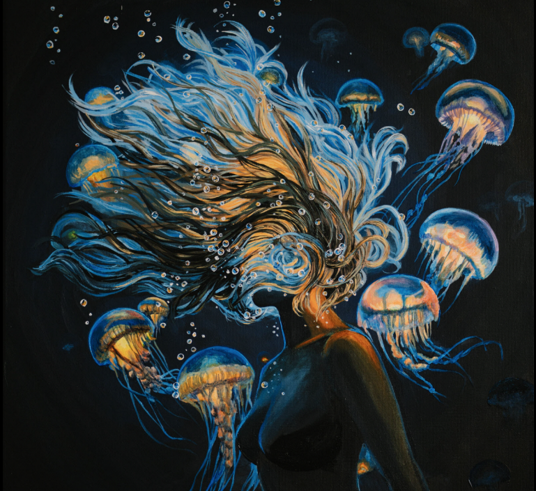 À travers des peintures aux accents surréalistes, l’artiste donne forme aux émotions et aux paysages intérieurs. L’eau, omniprésente, devient un symbole de transformation et de mouvement, où se rencontrent force et vulnérabilité, calme et intensité. Une expérience sensible et immersive à ne pas manquer.